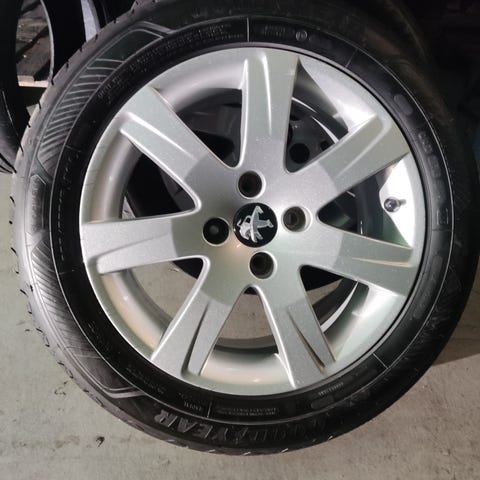 Sommardäck på aluminiumfälgar. 2 Fälgar är något skrapade. 3-4 mm spårdjup.