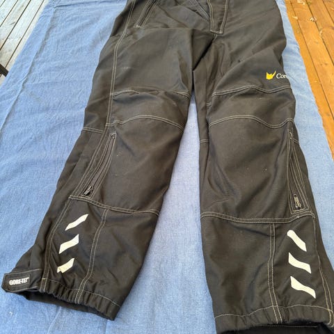 Har ett par vindtäta och vattenresistenta regnbyxor/cykelbyxor för cykling i våta och blåsiga förhållanden.