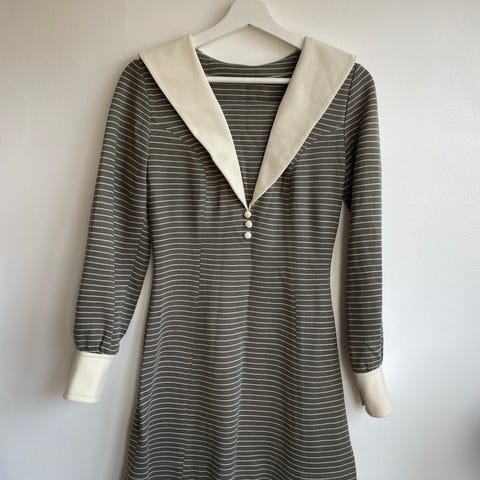 Fin klänning i sjömansmodell, klarröd färg med vita detaljer. Tjockare syntetmaterial.