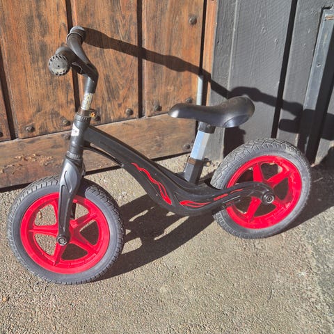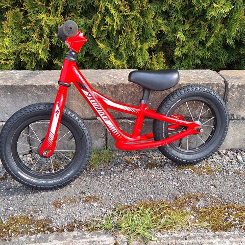 Liten röd balans cykel för barn från åldern 2-5 år.