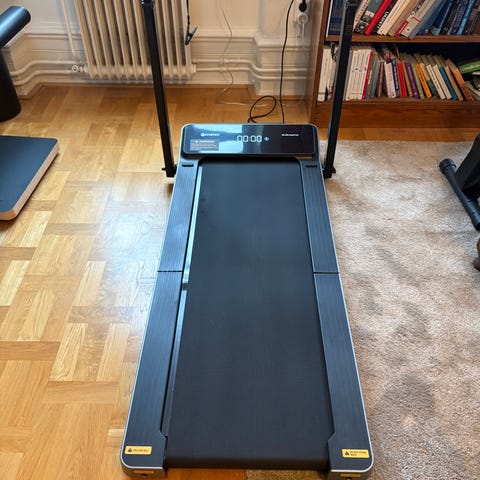 Handtaget viks enkelt ned så att man kan gömma löpbandet under exempelvis soffan så man slipper ha den ståendes framme.