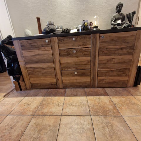 Massiva möbler i ek 3cm – Byrå, matbord + 4 stolar & TV-bänk