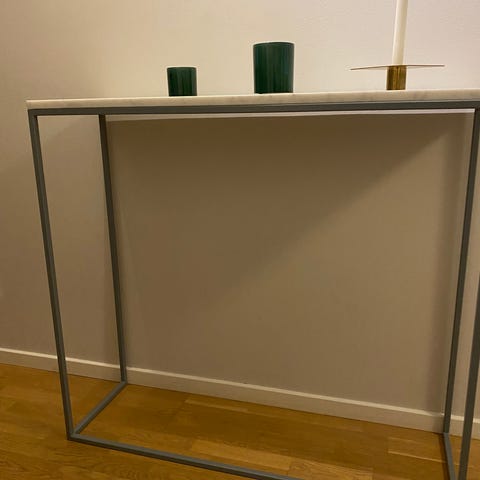 Säljer ett sido/konsolbord från ByOn. Nypris 2000kr. Bordet har två skador på ovansidan, den går dock att ta lite nagellack för att dölja detta. Ingenting som påverkar funktionaliteten.