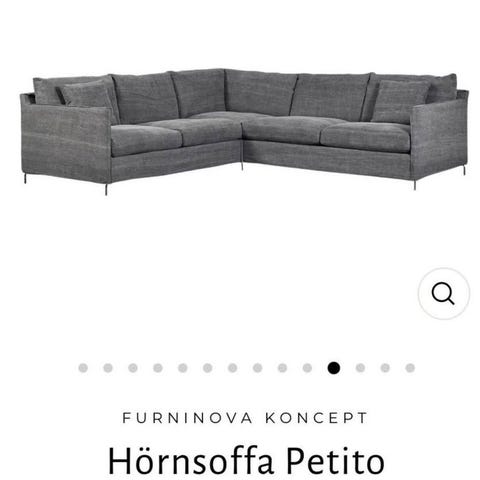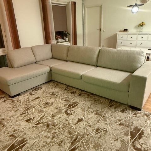 Hörnbäddsoffa och två fotpallar med bra förvaring