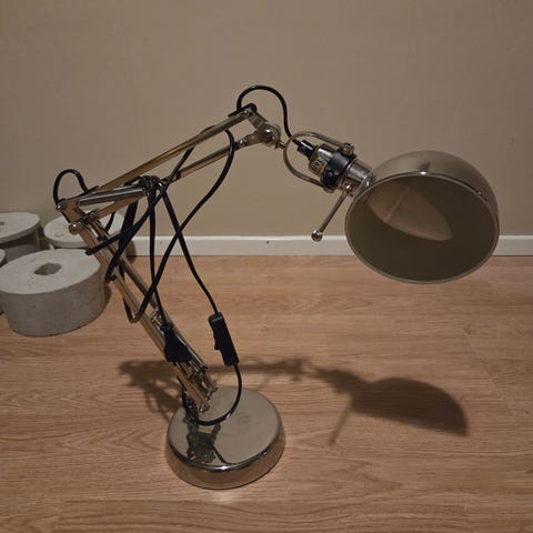 Den klassiska ikea skrivbordlampan i blå. Funkar fint och glödis ingår