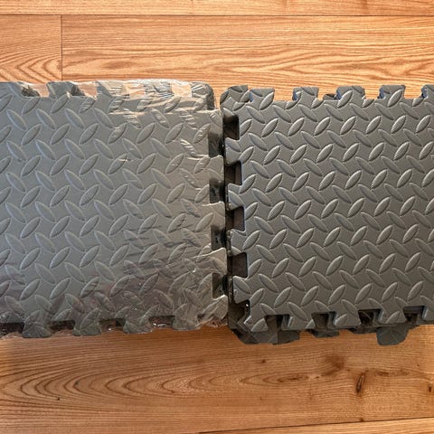 Materialet är mjukt och stötdämpande skum som lämpar sig för hemmagym, lekytor eller som skyddande underlag på hårda golv.
