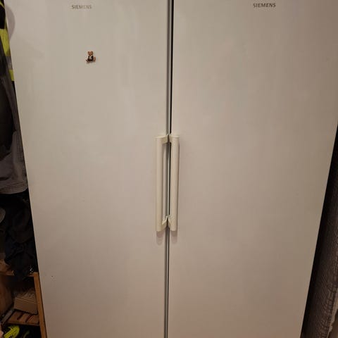 Vita. 185 cm. No-Frost. Fungerar felfritt. Det finns några små märken på dörrarna. Gott skick i övrigt.