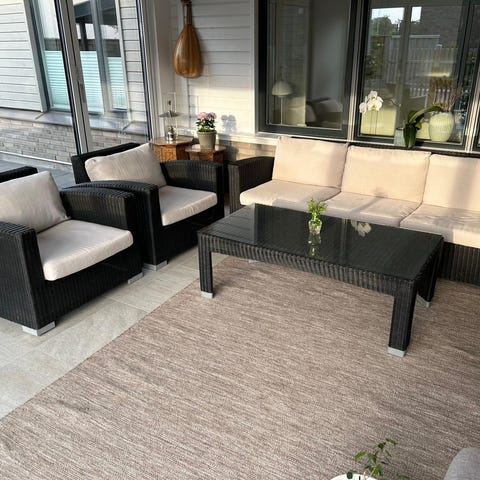 Säljer den enkla och fina soffgrupp då det känns trångt i balkongen då jag insåg att jag behöver en mindre.