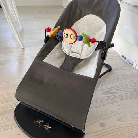 Svart med vändbart tyg (svart/vitrandigt). Använd men i fint skick. Liten skada i tyget på den svart/vitrandiga sidan. Nytvättad i parfymfritt tvättmedel. Från djur-och rökfritt hem.