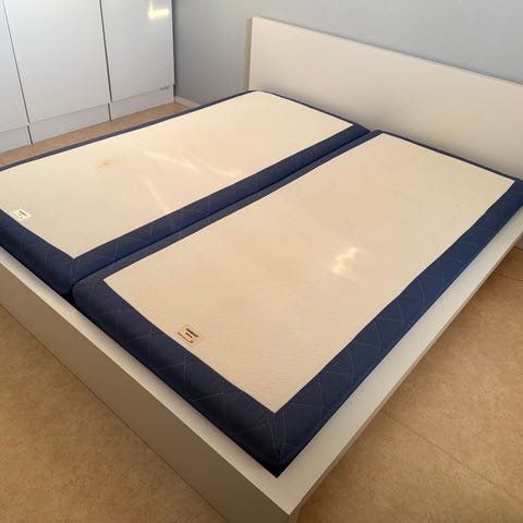 Resårbotten från Mio med ben, 160cm. Bäddmadrass Tussöy från IKEA kan ingå om man vill. Kan levereras inom Göteborg för 300kr.