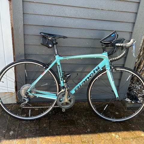 Säljer min racercykel då jag känner mig nöjd med den typen av cykling. Har inte slitit ut originaldäcken, cykeln har många mil kvar i sig. Ramen är 60 cm, jag är 188 cm och jag tror cykeln passar bra för både längre och kortare cyklister.