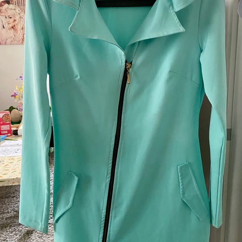 Skräddarsydd Elegant och Festlig Tvådelad Klänning stl M i fin kvalitet i en snygg blågrå färg. Klänningen är helfodrad med blixtlås i ryggen. Mycket fint skick.