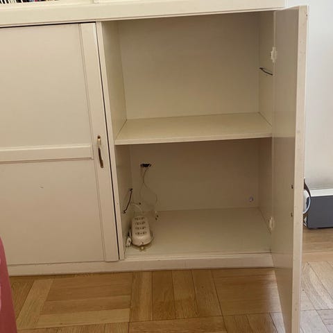 Underdel med två dörrar med lamellfront och invändigt förvaringsutrymme. Mindre skavanker.