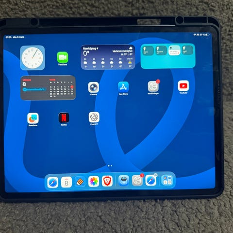 Apple iPad surfplatta med 256 GB lagringsutrymme. Enheten har pekskärm och kör iPadOS. Baksidan är i rosa. 10e generationen
