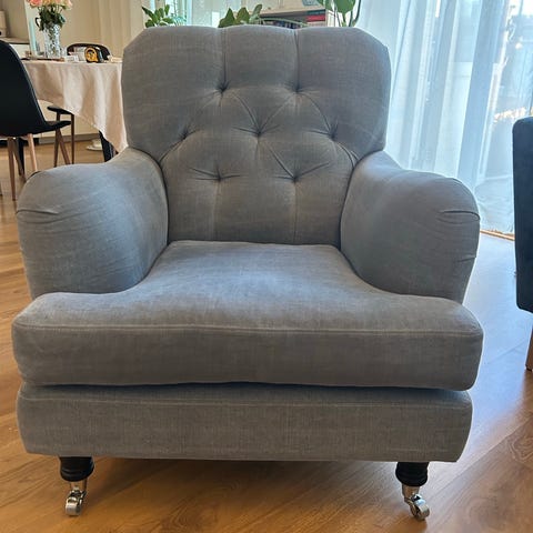 Mörkgrön fåtölj säljes, sparsamt använd och inköpt på Nordiska rum. Mått finns i bilder!