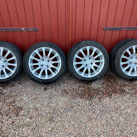Kvalitetsvinterdäck från goodyear som sitter på dezent-fälgar. Nypris minst 15.000.