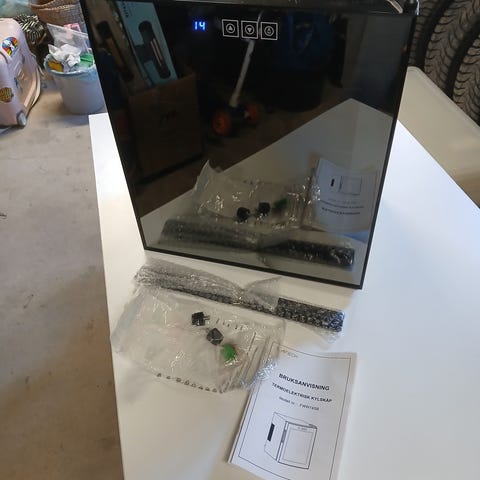 Ytfinish i svart med ventilerad baksida och inbyggd fläkt. Passar för förvaring och temperering av vin eller andra drycker inomhus.