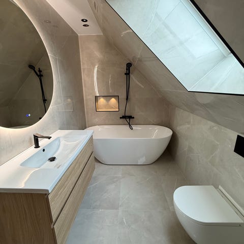 Det blev lite mer än 2 kvm (2 hela förpackningar och lite till) Lhådös granitkeramik carrara marmor 30x60 cm över efter vår badrumsrenovering så förhoppningsvis kan någon ha användning av det. Funkar till både vägg och golv och tål golvvärme. Ca 600 kr per kvadratmeter för nytt så det är värt över 1200 kr, men jag säljer allt för 500 kr. Hämtas på plats.