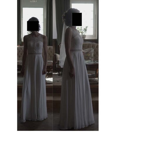 Oanvänd klänning då jag valde en annan bröllopsklänning. Ej omsydd eller liknande.