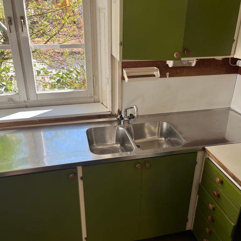 Diskbänk dubbelho rostfri med blandare skänkes