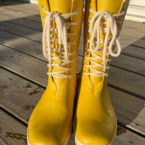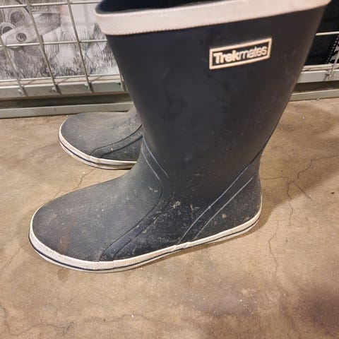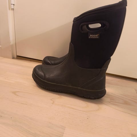 Praktiska låga gummistövlar i svart med vit kant. Storlek 37. Knappt använda