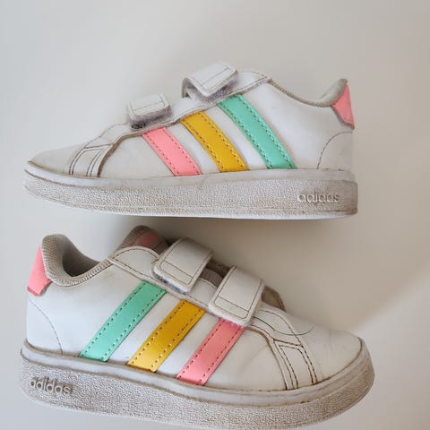 Sparsamt använda vita sneakers med kardborreband från Veja. Storlek 33.