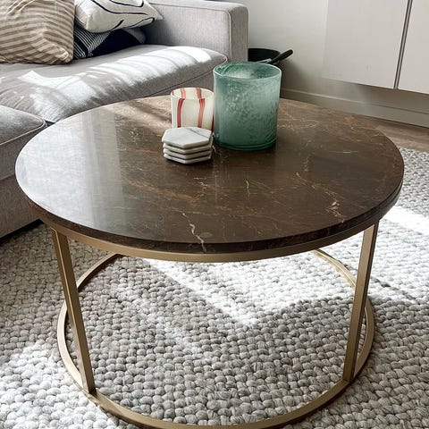 Vitt runt soffbord - marmor med glas