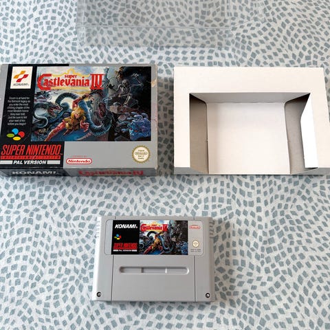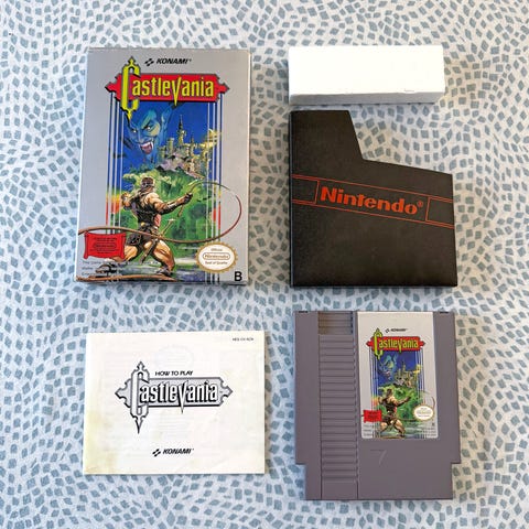 Castlevania till NES. Spelet är från Konami och är en PAL-version. Kassetten har en etikett från Yapon.