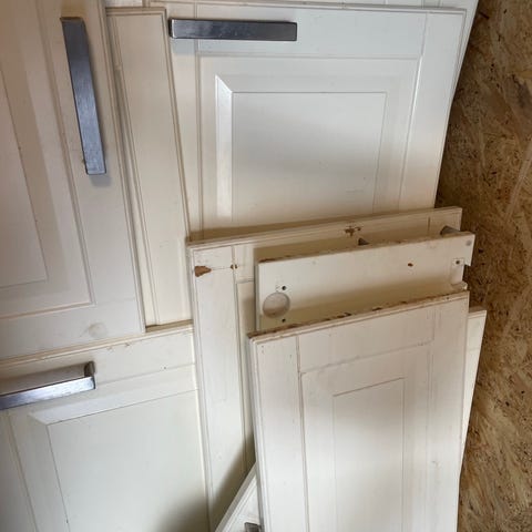 Vi har bytt köksluckor. Samtliga delar är nu nedplockade. Täcksidor ingår ej.
