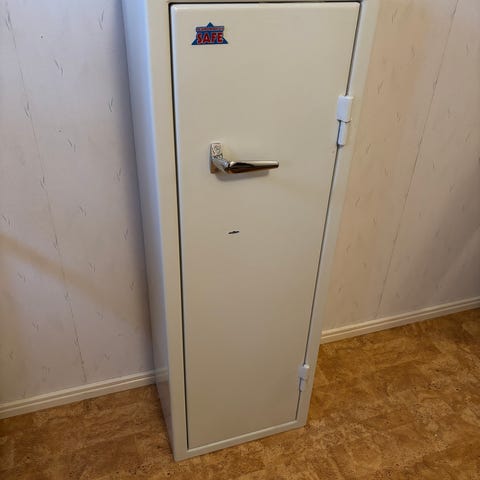 Säljer ett Hadak 616 vapenskåp med kod, rejält vapenskåp på 186kg så behöver ej bultas. Enkelt att lasta bilen kan backas hela vägen till skåpet