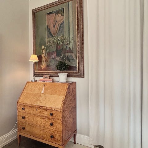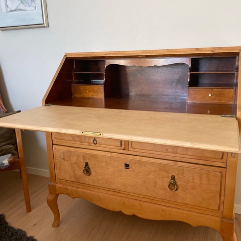Säljer en fin och praktisk chiffonjé/skrivsekretär i lantlig stil. Perfekt som ett kompakt hemmakontor eller som dekorativ möbel i vardagsrum eller sovrum.