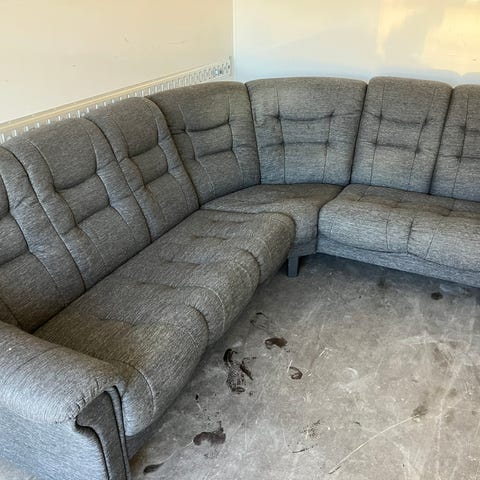 Hörnsoffa mörkgrå, bra skick 2500kr