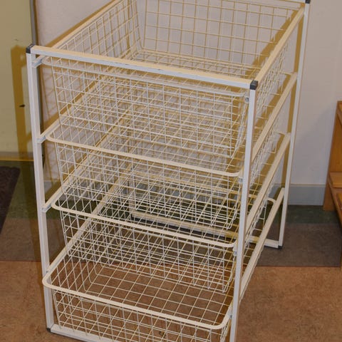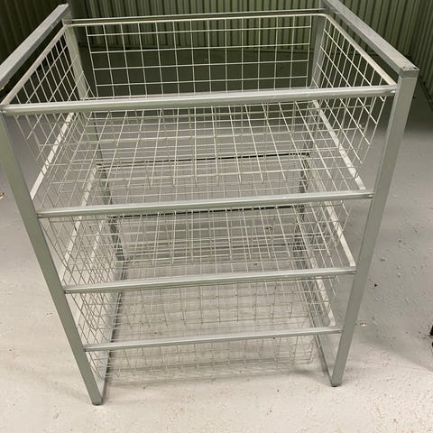 grå trädbackar med stativ 44 x 53 x 70 cm till avhämtning, i metall. Mycket gott skick.
