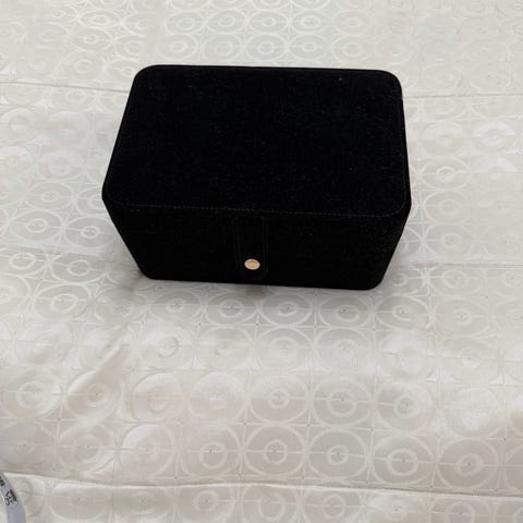 Konstlädert är svart, insidan på klocklådan är beige.