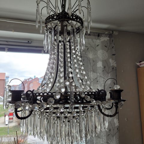 Lampor i fuskterakotta, som jag lackat svarta. Skärmar i pergamentstil.