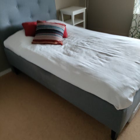Mio kontinentalsäng i sammet mullvad med matchande madrass och kromfärgade ben. Sängen har en vadderad bäddmadrass upptill och en stabil underdel i tygklädd ram. Till sängen hör en vit sänggavel i trä med slät, enkel design. Passar som komplett sänglösning i sovrum. Medium i hårdhet Nypris 9.200kr