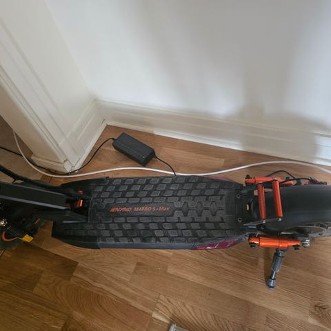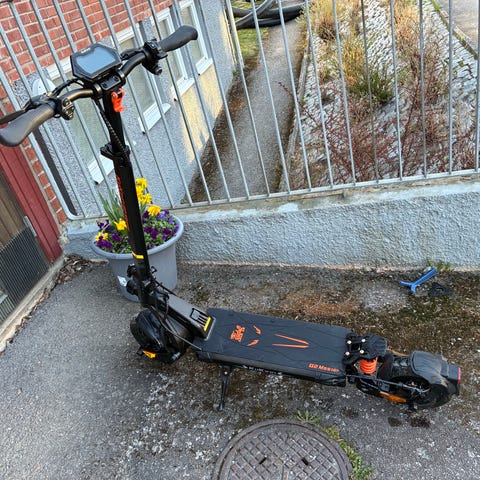 Säljer en scooter som är i okej skick och fortfarande körbar. Scootern startar som vanligt, laddar som den ska och känns stabil vid körning.