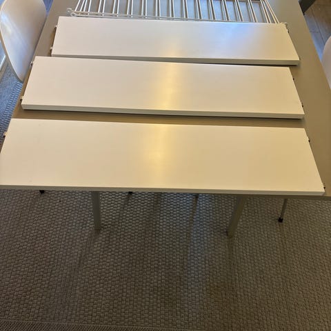 Några av hyllorna har små skav men förmodligen skall det läggas saker på hyllorna så då är det nog inga större bekymmer.