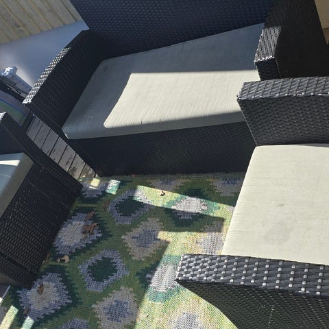 Ena fåtöljen har lite slitage vid armstödet men i övrigt är allt annat som det ska.