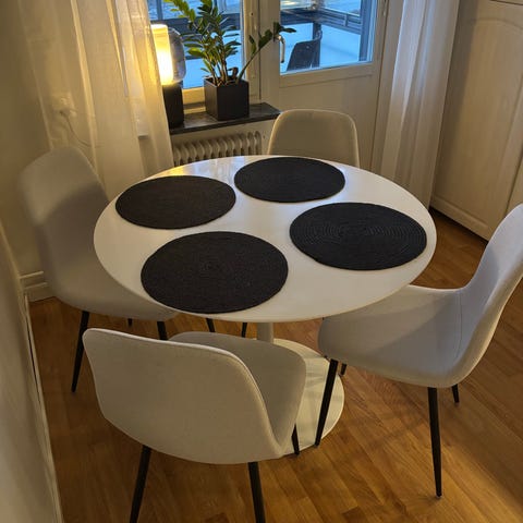 Runt bord, 4 stolar & Matta.