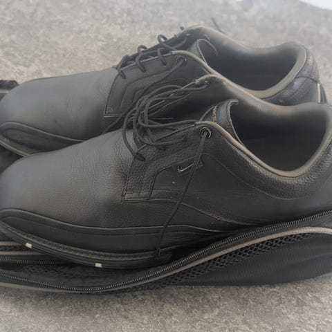 Footjoys golfsko i svart färg, herrmodell i storlek 45. Opti Flex. Skorna har snörning framtill och ovandel i läderliknande material med förstärkt tå- och sidoparti. Innersulan är vadderad med mönstrad textil för ökad komfort. Yttersulan är kraftig och anpassad för stabilitet vid gång och spel på golfbanan.