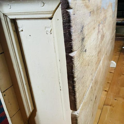 Fin antik byrå från 1800talet. Ljusgrå tunnt målad, med svarta fötter i orginal färg. Och tidsenliga beslag. Bör ses.