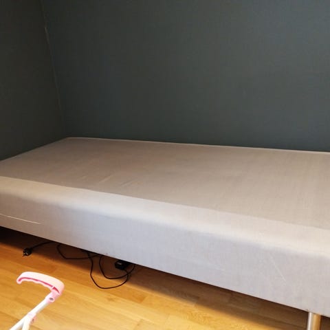 Sängbotten från Jysk skänkes mot upphämtning. Den är 180x200 och två brädor är sönder, samt ett litet hål som syns på sista bilden. Katt finns i hemmet och gratis för den som kan hämta☺️