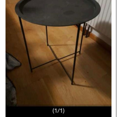 Brickbord med en rund bricka i silverfärgad metall med hamrad yta. Underredet är i svart metall och är avtagbart. Måtten är 41x41x39 cm.