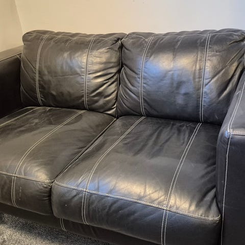 Jag säljer lädersoffa, den är ca 160-150 cm bred.