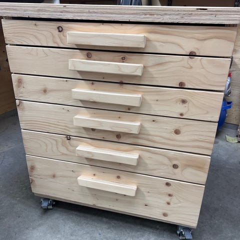 Rejäl hurts på hjul för garage, hobbyrum eller liknande. Lådorna sväljer mängder och löper fint på skenor..