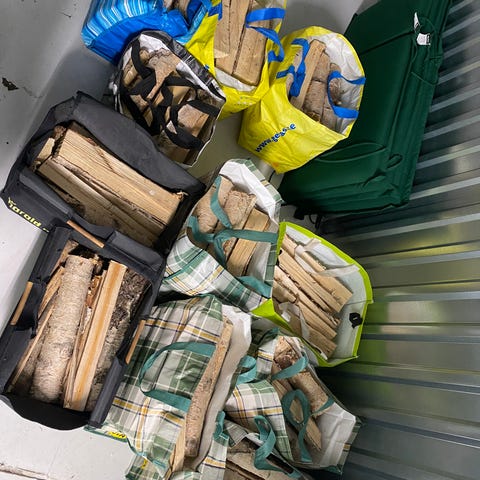 Ved packad i nätsäckar. Passar för användning i kamin, öppen spis eller vedspis. Säckarna är lätta att hantera och förvara, och nätet ger god luftcirkulation kring veden.