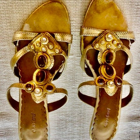 Fina sandaletter i bronsfärgad med liten klack. Otroligt snygga på foten. Hämtas i Täby
