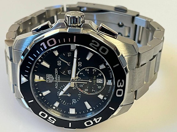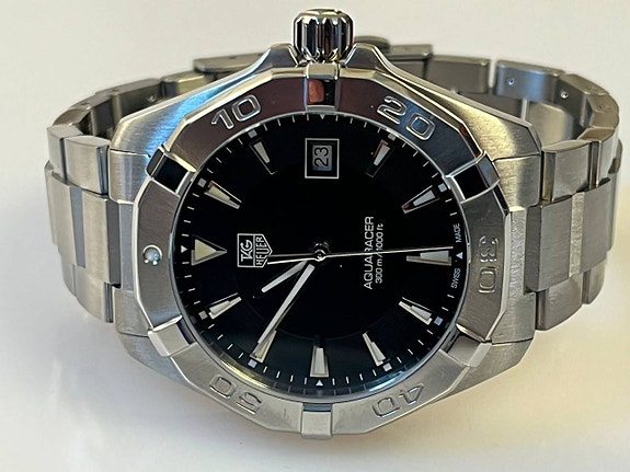 TAG Heuer Aquaracer WAY101C.FT6153 i mycket fint skick. Klockan är lätt använd men i nyskick, och är en sportig samt stilren modell som fungerar lika bra till vardags som vid mer uppklädda tillfällen.