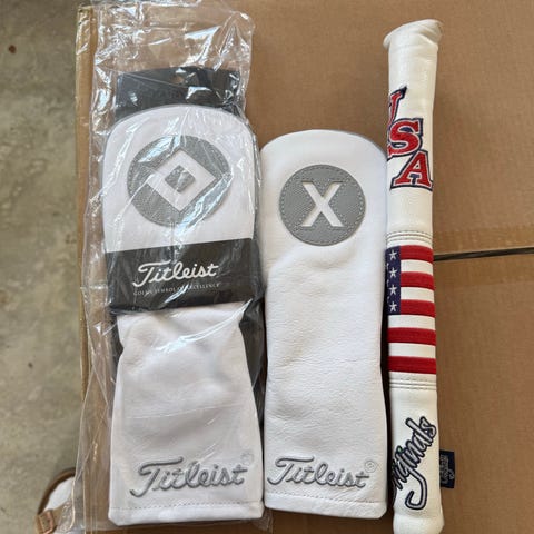 Headcovers för mallet putter och hybrid. Mallet-headcover är i äkta skinn med magnetlås från blackswing och använt i 1 år. Hybrid-headcover är oanvänt i syntet.